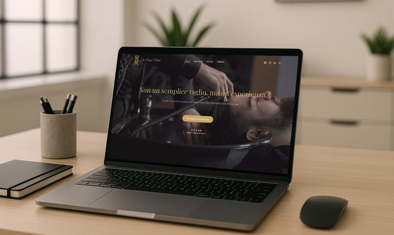 Per The Royal Barber abbiamo sviluppato un sito vetrina di fascia premium, palette antracite e oro, e un’esperienza utente raffinata che rispecchia lo stile del brand.